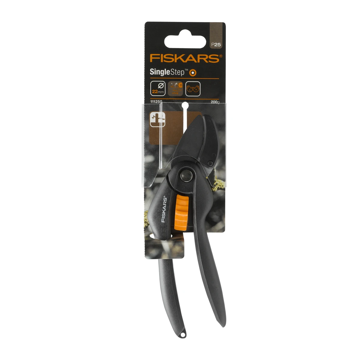 Fiskars SingleStep Anvil P25 pruner is a simple pruner for cutting hard wood.