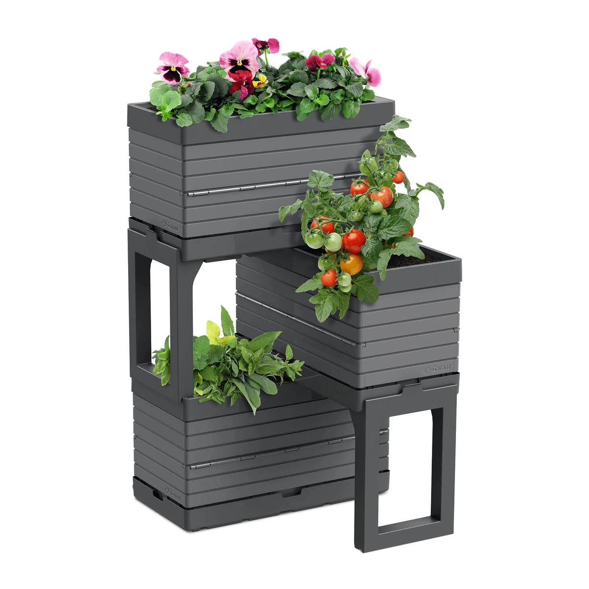 The Garant Modular Garden is a versatile planter system with 3 levels that are adjustable and rotatable to fit any space. It is ideal for anyone with a small gardening space in their home. These planters are made from high quality durable polypropylene and can be collapsed and stacked for easy storage. The planters are easily assembled with instructions provided. Suitable for all types of vegetable and flower plants.