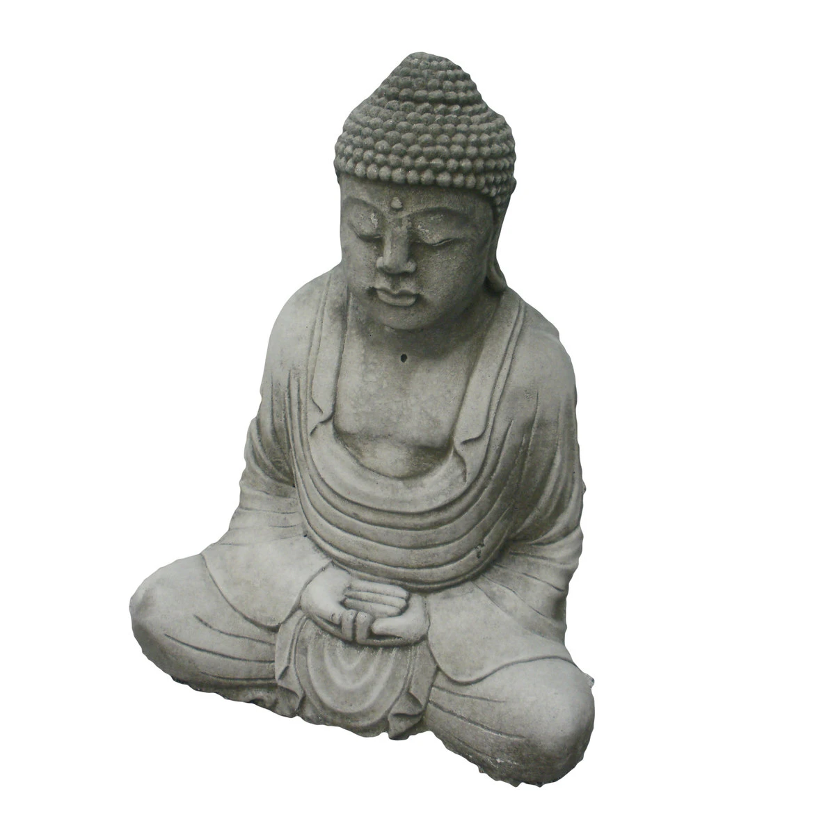 This beautiful Buddha statue features a Buddha in a seated position with his hands in his lap. This pose sees the Buddha in a meditation pose, face forward, eyes closed and hands in lap. This ornament is made of casted stone with a flawless finish and intricate detailing.