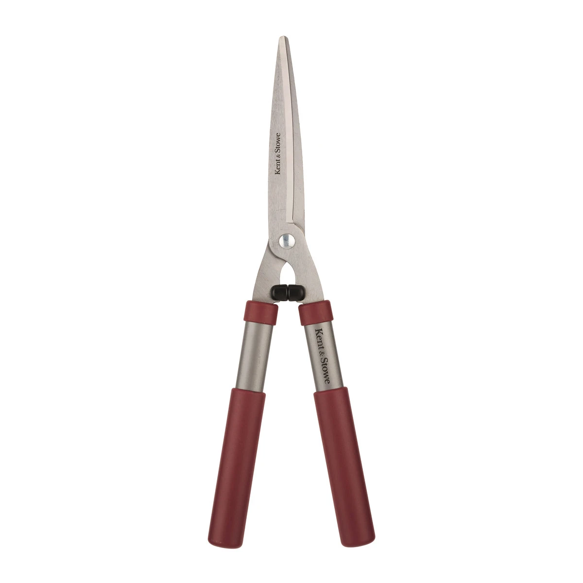 The Kent and Stowe Wooden Handled Hedge Shears have premium ground, coated carbon steel blades for rust resistance and a smoother, clean cut. The shears feature a shock-absorbing function for added comfort while cutting and traditional ash wood handles, tapered for additional comfort. Cutting diameter 6mm. These shears are ideal for those light trimming tasks, for cutting and shaping soft, non-woody stems and leaves of hedges and shrubs.