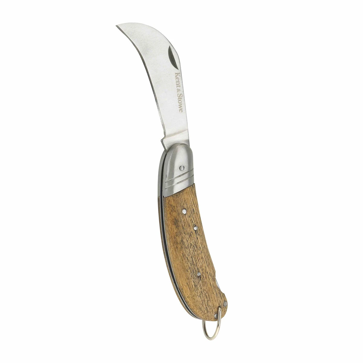 The Kent & Stowe Pruning Knife is a high quality tool that will make pruning easy. It has a sharp stainless steel curved blade for clean and efficient cutting in one attempt without damage. The blade also folds in with a safety locking mechanism for safe storage. The knife has a durable design made to last including a hardwood FSC handle.