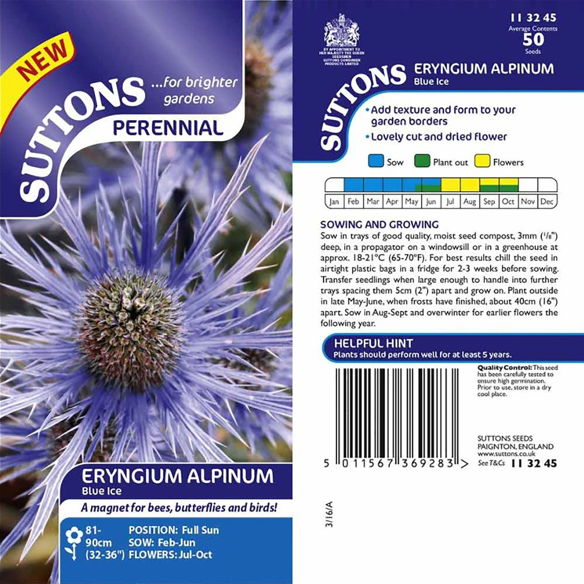 Unusual, spiky violet-blue textured plant that attracts butterflies, bees and small birds into your garden. Lovely vibrant colour that adds zing to your borders and pots throughout the summer into autumn. Flowers July-October. Height 80-90cm. Hardy perennial.