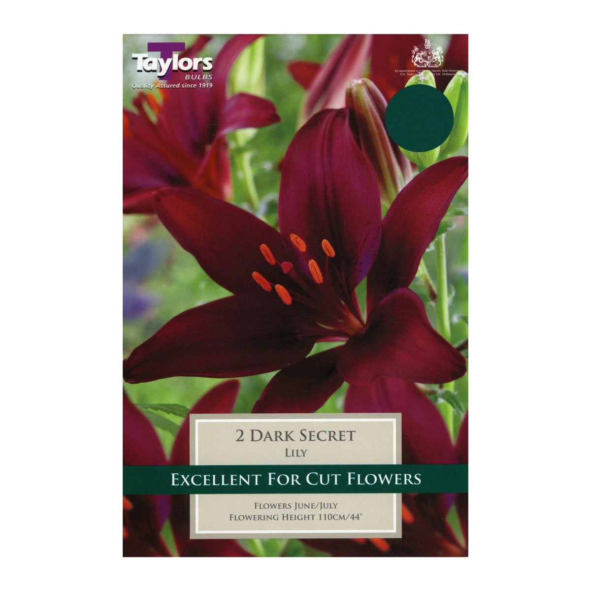 Lily Dark Secret is an Asiatic Lily with deep burgundy almost black flowers. Lilies like well-drained, moisture retentive soil with plenty of organic material. They like sun or partial shade and protection from strong winds and are good for flower beds, borders, wild gardens and containers on the patio or balcony. Plant from February onward for June or July flowering.