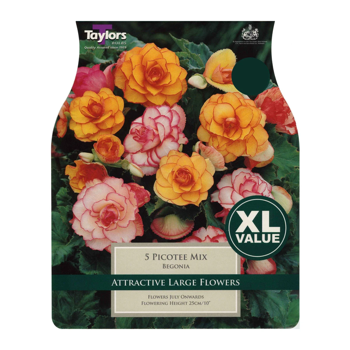 Begonias are a much loved and popular choice to have in gardens as they produce bright attractive flowers from July onwards. They will grow to approximately 23cm. This pack will produce mixed coloured begonias.