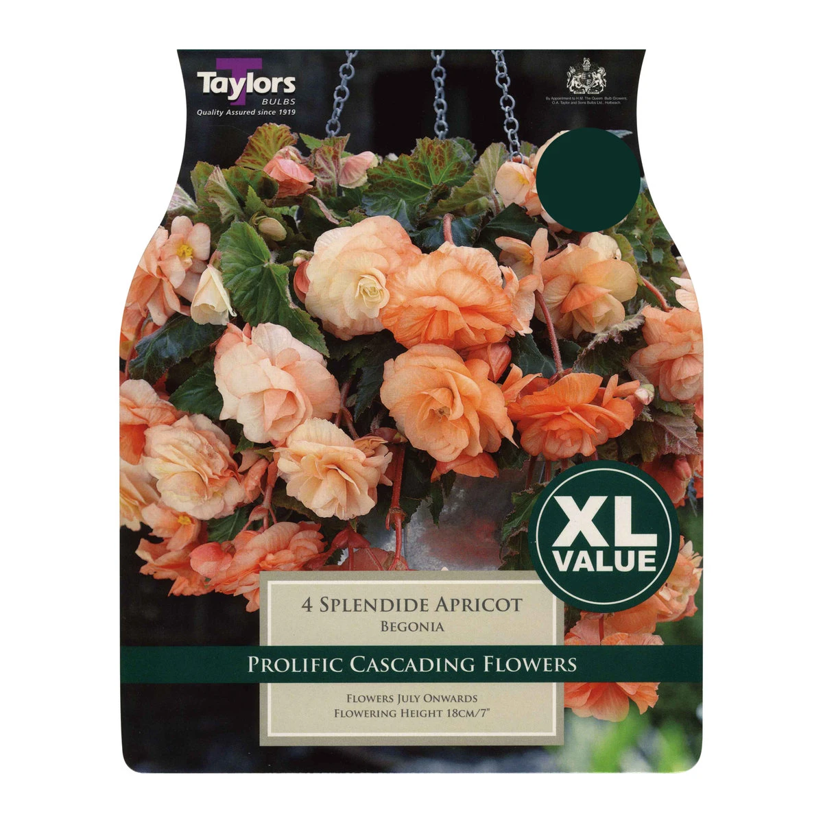 Taylors are a fourth-generation family bulb producer dating back nearly 100 years. They are the official bulb supplier for the royal gardens and were awarded The Royal Warrant in 1985. Over the years they have won numerous awards of innovation and quality. Delicately coloured apricot begonias with a flowering period of July onwards and a final growth height of approximately 18cm