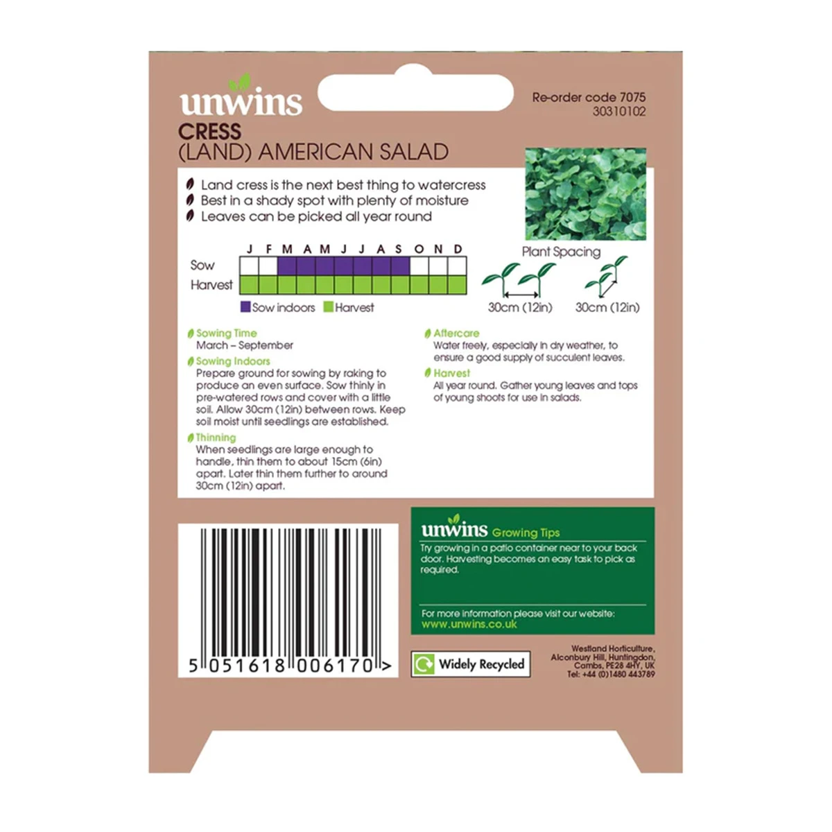Land cress is the next best thing to watercress, but does not need running water to produce a delicious crop. It is best in a shady spot, so is good for inter-cropping with taller vegetables.
