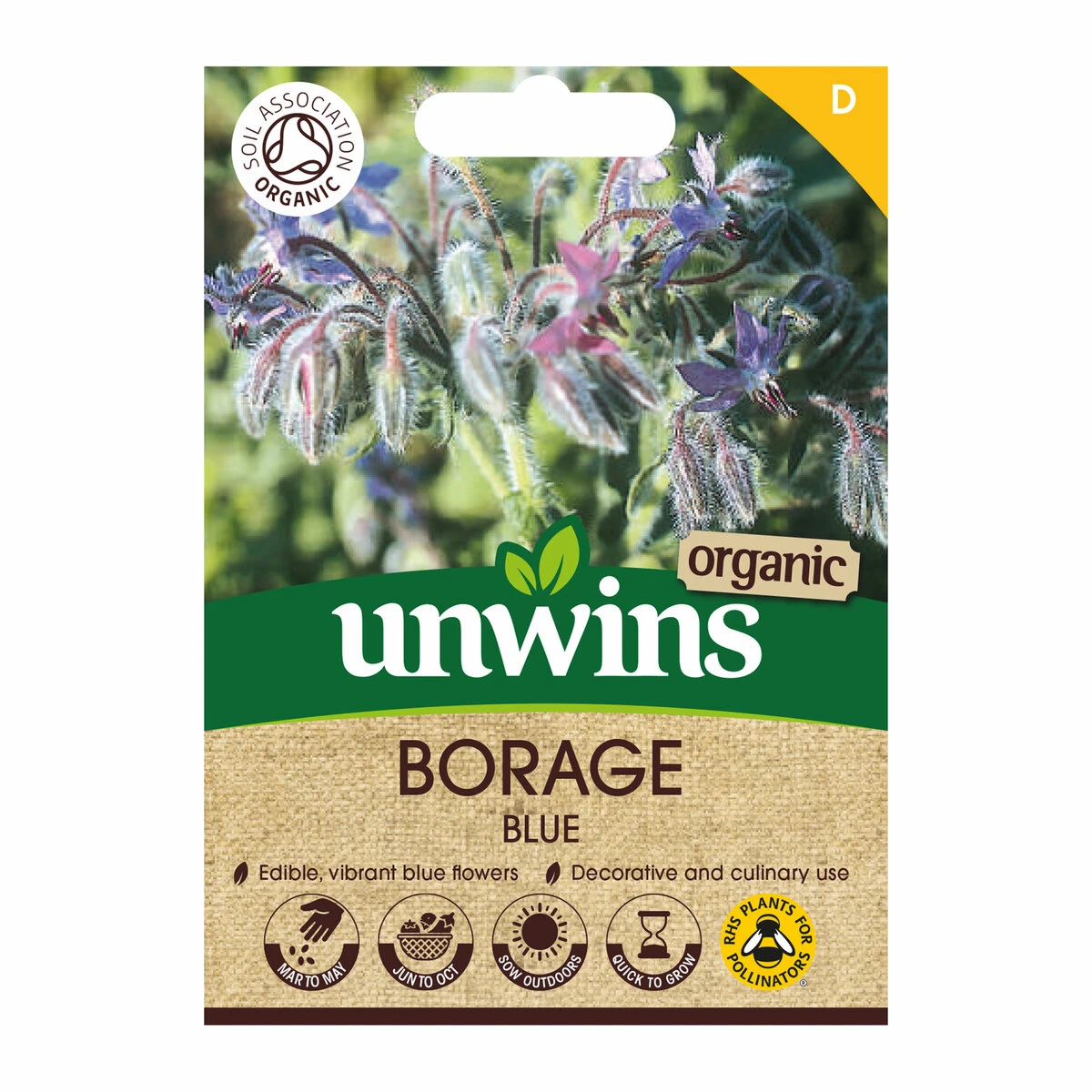 Borage is an incredibly easy-to-grow herb with lovely flowers and a wide range of uses. It germinates quickly and produces large flowering plants with azure blue, star-shaped flowers throughout the summer. It’s a hit with the bees!