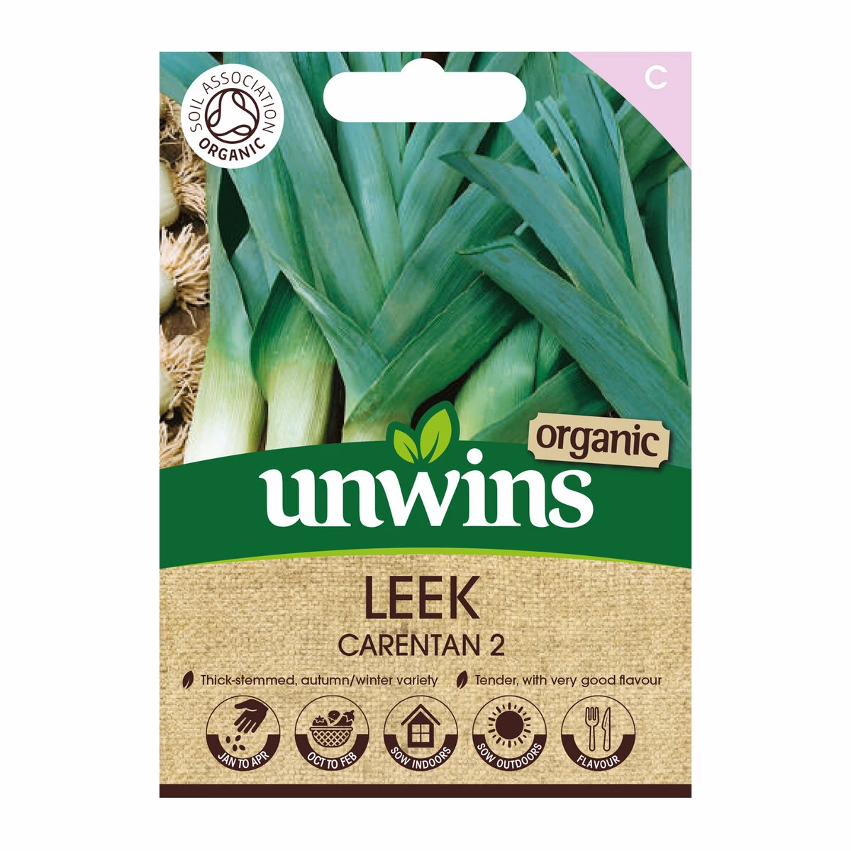 Harvests of thick, tender white stems with excellent flavour, ideal for soups and stews, are available in the autumn and winter. Organic Leek ‘Carentan 2’ is a vigorous, fast-growing variety that will keep you going all winter.