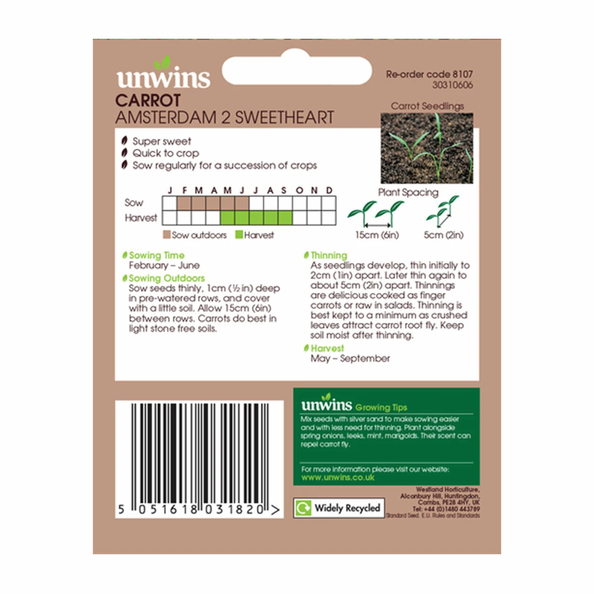 A brightly coloured, exceptionally sweet and very early variety of carrot. These are practically coreless, particularly in youth. Regular sowing will result in a succession of crops. Sow outdoors in evenly spaced out rows from February to June. Harvest from May to September. In order to harvest full crops, plant these seeds next to spring onions, leeks, mint or marigolds since their aroma can repel carrot flies. To make sowing easier and reduce the need for thinning, combine seeds with silver sand.