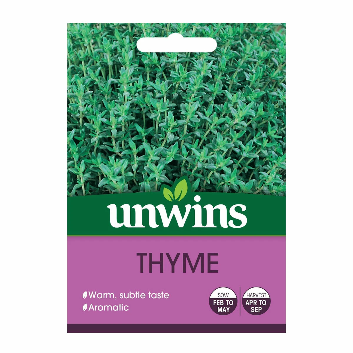 Thyme has an excellent flavour and smell. It transforms almost any savoury dish with its subtle taste. Lovely as a path edger or at the front of a border. Sow indoors in trays from February to May before transplanting and planting out in even rows. Harvest from April to September.
