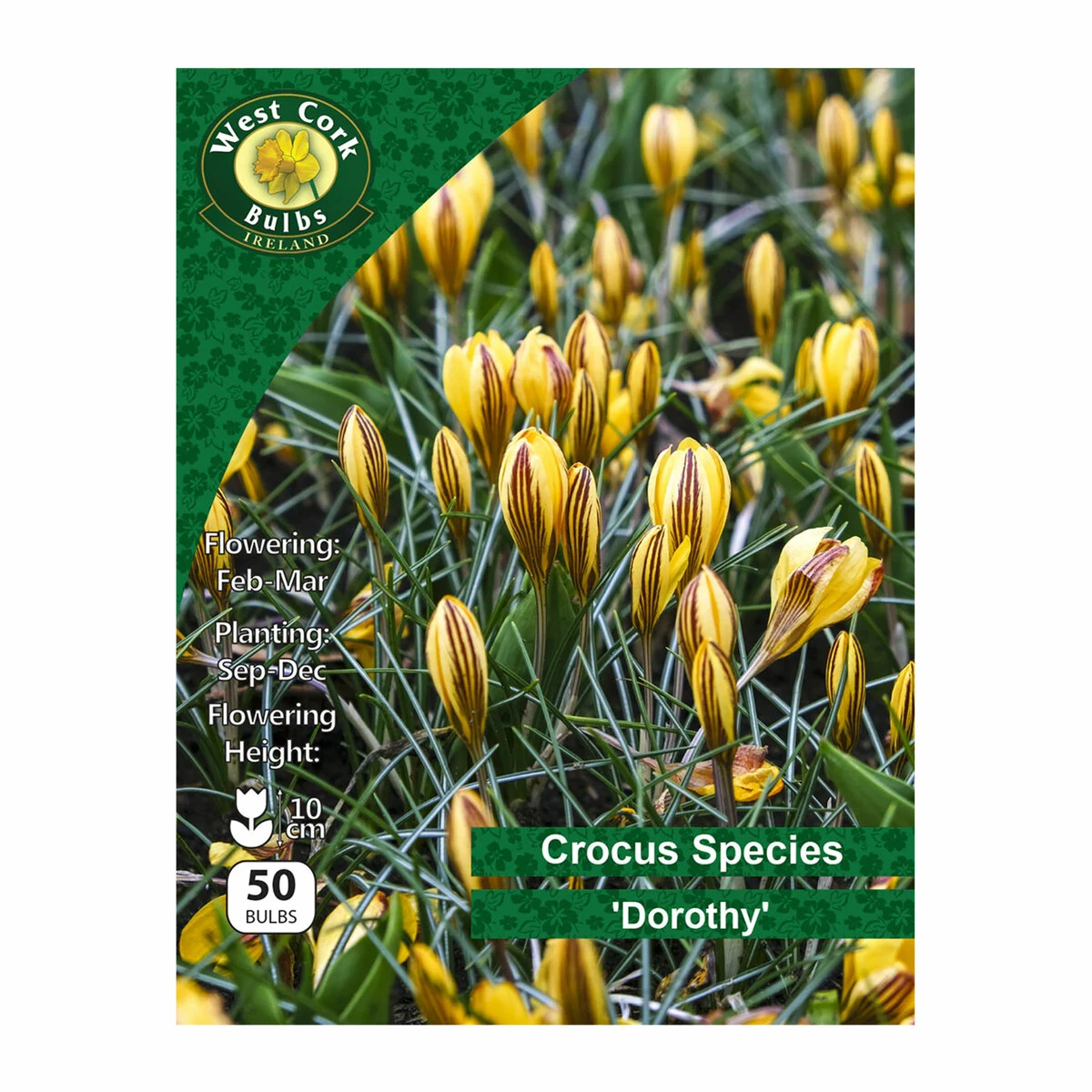 These early flowering crocuses, which have stunning bright yellow blossoms that are striped with bronze on the outer, will brighten up drab winter lawns and gardens. One of the first flowers to bloom in the garden is named Dorothy. If not disturbed, they will naturalize wherever they are planted over time. They will come back every year, and their numbers will grow.