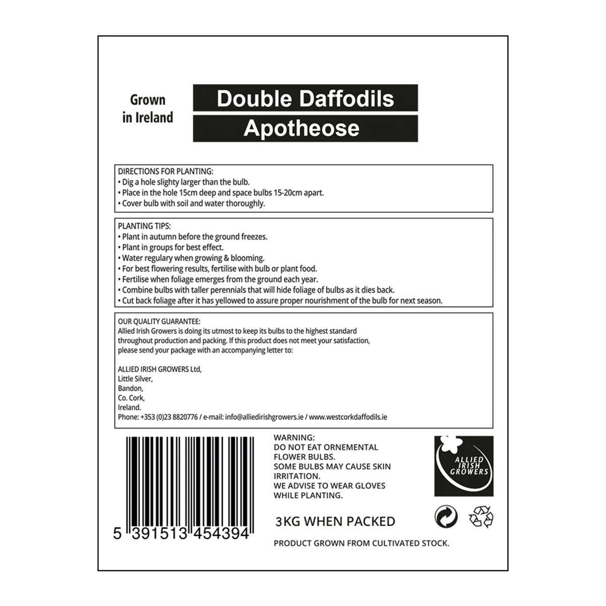 Daffodils are easy to grow plants which continue to naturalise perfectly over the years. These flowers prefer well drained soil in a sunny or light shaded area. This double flowers is quite large with vibrant colours. Planted in mass, they become a stunning feature in yur garden in early Spring.