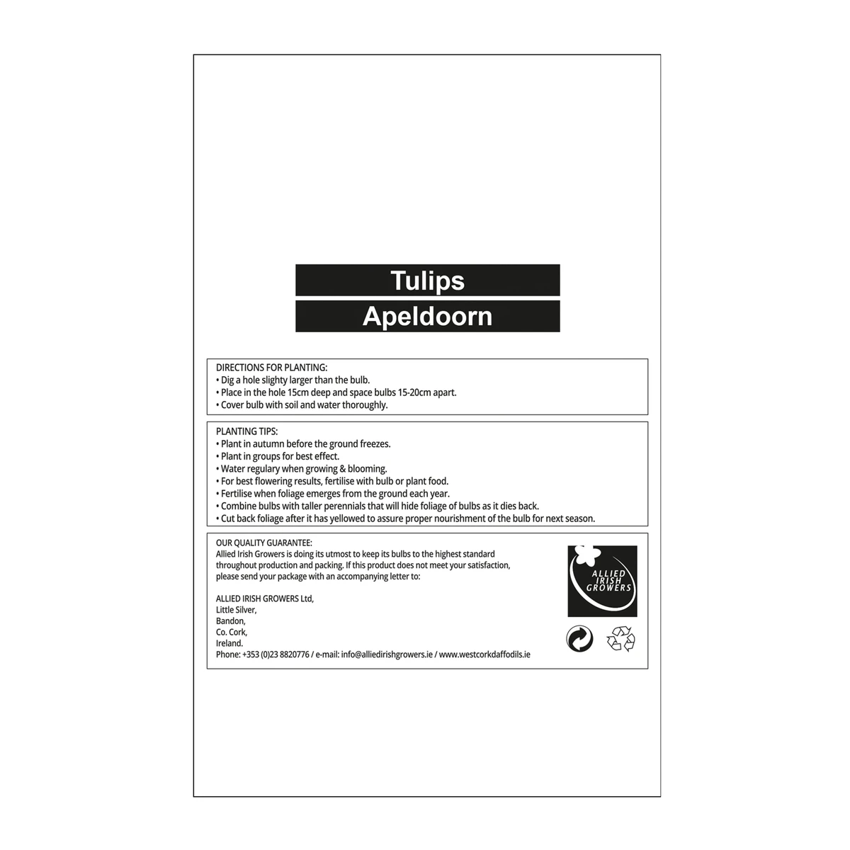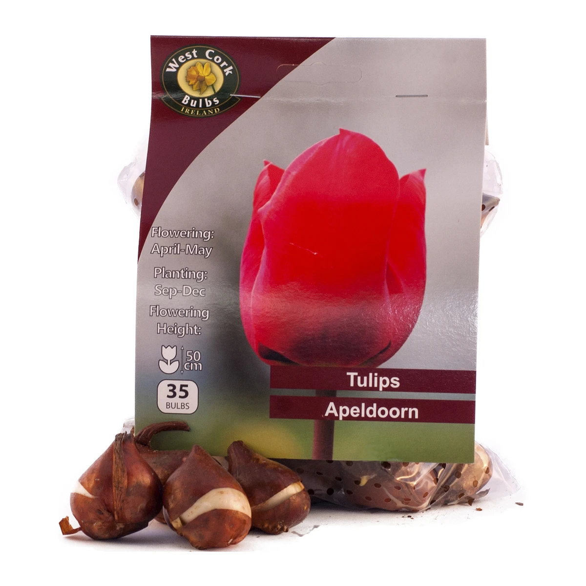 The Single Tulip Apeldoorn is a well-established, popular and reliable tulip, which produces the most dazzling red flowers in mid-spring. The flowers last well after being cut and the tall stems are robust enough to hold up in poor weather conditions. Their full-grown height is 50-60cm and they should be planted from September to December, blooming from May to June.